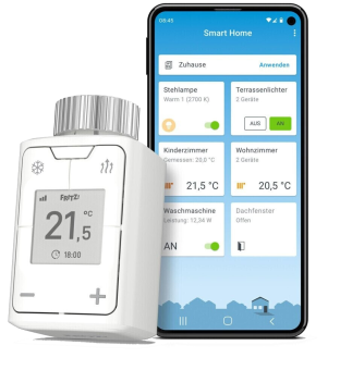 Besonders smart ist die Fenster-Offen-Erkennung des Heizthermostats. Wird ein Temperaturabfall festgestellt, wie er z. B. bei einem offenen Fenster auftritt, wird die Heizung automatisch abschalten und informiert Sie per Mail oder Push-Benachrichtigung über das Ereignis.